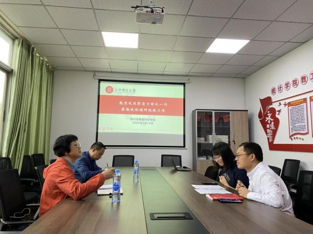 4月19日上午,校党委常委、统战部部长彭清宁一行到统计与数据科学学院就党外人士、民族宗教等工作进行调研,统计与数据科学学院院长平卫英、院党委书记陶春海参加座谈会。
