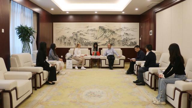 李春根代表学校对伊娜·哈茨克维奇一行的来访表示热烈欢迎,并简要介绍了我校办学情况和近年来国际化工作取得的相关成就。他表示,希望双方能结合时代的发展,在数字经济、VR技术、产品设计等学科开展交流与合作,推进专业交叉融合布局,赋能高质量发展。