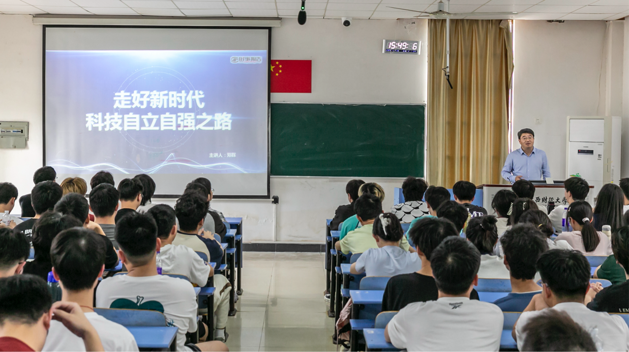 4月24日下午,校长邓辉以“走好新时代科技自立自强之路”为主题,在麦庐2201教室为商务英语221班、软件工程221、222班学生讲授了一堂精彩的“形势与政策”课。