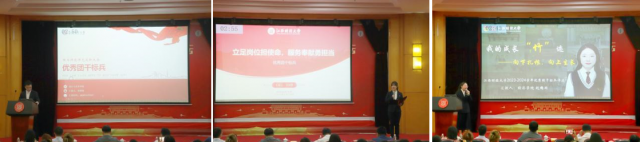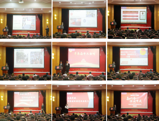 4月24日下午,我校2023-2024学年团内评优评先述职大会在蛟桥园校区北区国际学术报告厅顺利举行。学工部(处)副部长夏贤明,校团委副书记阳铃,国际合作与交流处副处长刘小兵,招生就业处副处长阮艳平,创业教育学院副院长陶志超以及各学院团委代表等出席大会并担任评委,来自18个学院的90名团员青年代表参加大会并担任大众评委。