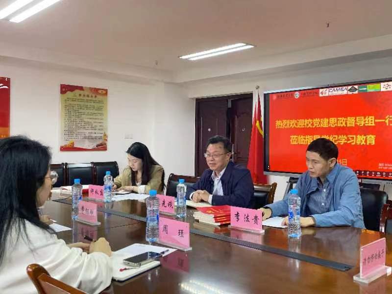 为落实学校2024年第3次书记例会关于在我校开展党纪学习教育的工作部署,推动我校党纪学习教育行之有恒,扎实有效,4月28日,校党建思政工作督导组近期对校属单位的党纪学习教育工作进行了督促和检查。校党建思政工作督导组组长伍先斌、督导组成员李法贵、工作人员许秋霞参加督查。