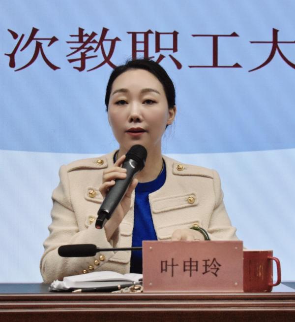叶申玲传达了财大全面从严治党的会议精神。她强调全面从严治党对教育事业的深远意义。她要求全体教师:要学深悟透践行习近平总书记关于党的自我革命的重要思想;要在当前内外竞争压力形势下,提高自己的综合素质和业务能力;要肩负“先进单位”的使命,不断提升规范教育教学管理,为推动学校高质量发展提供坚强保障。叶申玲还介绍了校友工作的开展情况,展示了学校在校友联络和服务方面的积极成果。