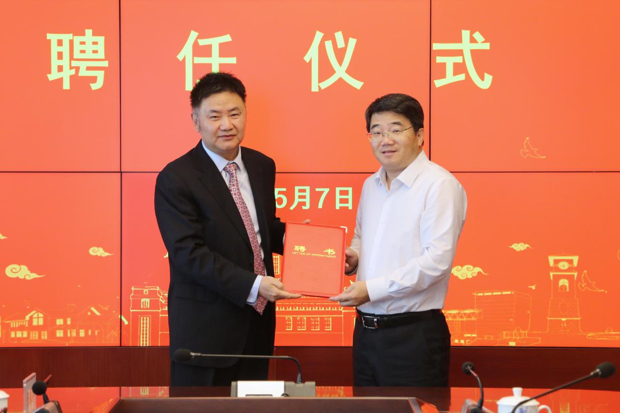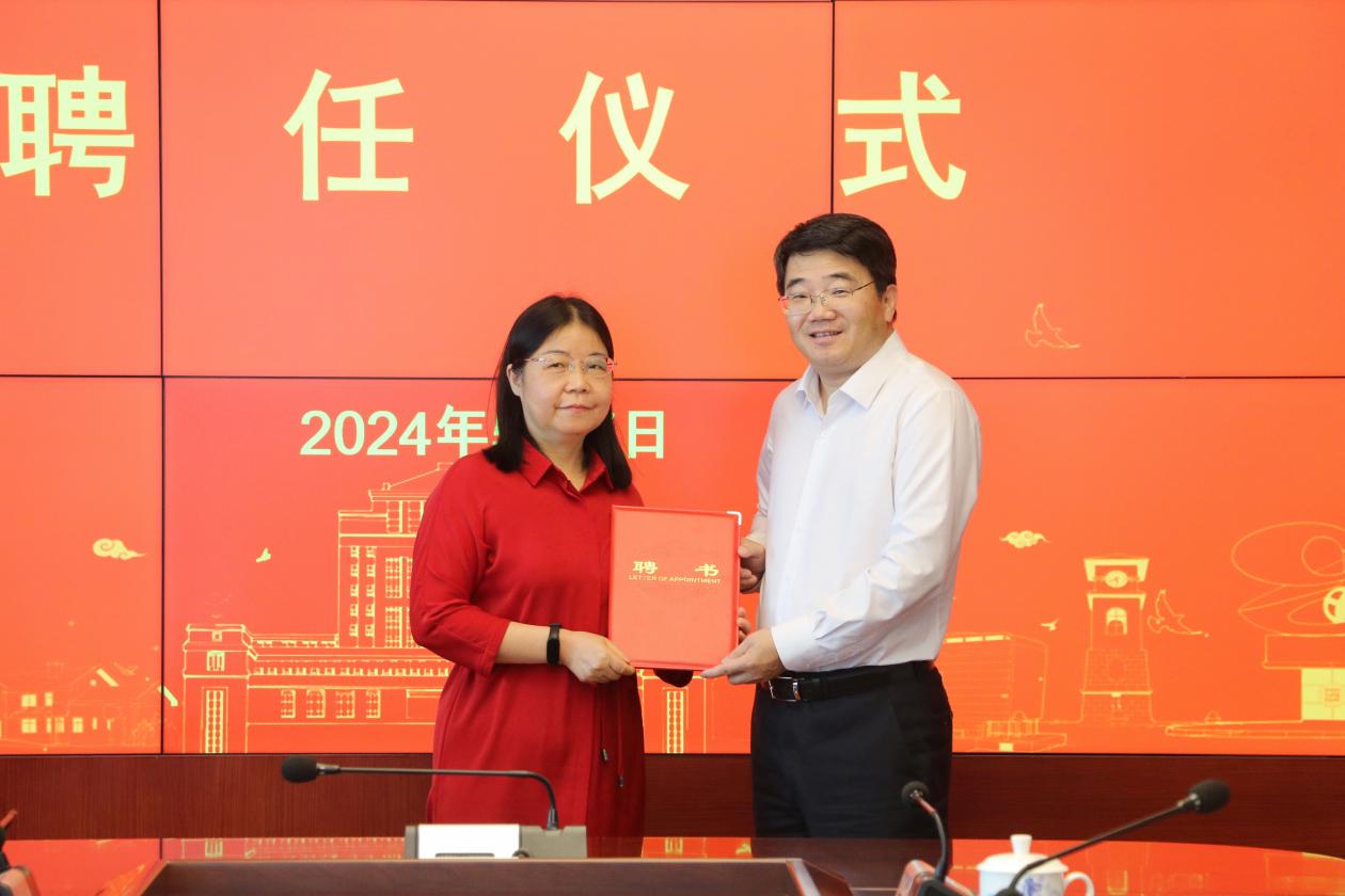 邓辉为本科教育教学督导组组长狄国强、副组长陈海花颁发聘书。