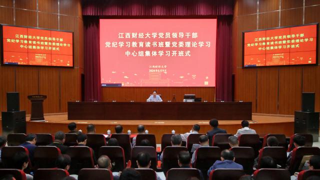 为深入学习贯彻习近平总书记关于党纪学习教育的重要讲话重要指示精神,全面贯彻落实《中共中央办公厅关于在全党开展党纪学习教育的通知》要求和省委工作部署,5月9日,江西财经大学党员领导干部党纪学习教育读书班暨党委理论学习中心组集体学习开班。校党委副书记袁雄作开班式动员讲话。校领导,学校副处(院、所)级以上领导干部,非中共党员处级领导干部列席读书班开班式。开班式由校纪委书记顾有平主持。