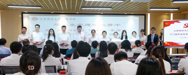 会上,邢小明带领了所有毕业生党员重温入党誓词,学院党委向毕业生党员送上美好的祝愿《致2024届毕业生党员的一封信》,强调全体毕业生党员要不忘初心、牢记使命,在即将开启的新的人生道路上,始终发挥“一名党员就是一面旗帜”的先锋模范作用,用实际行动践行在党旗下的神圣誓言,为青春篇章写下壮丽的一页。学院为毕业生党建骨干代表赠送书籍,为全体党员发放了红色随身包。