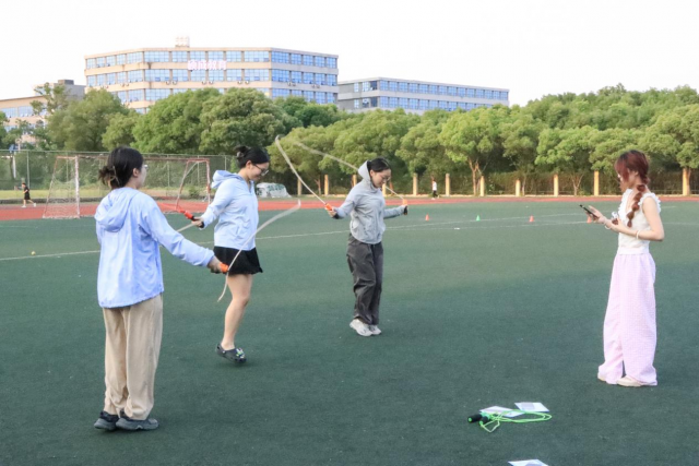 除了这些游戏环节外,现场还举行了跳绳比赛。无论是个人速度跳绳还是班级团队跳绳,参赛者们都展现出了极高的热情和实力。他们挥汗如雨,全力以赴,每一次跳跃都充满了力量和决心。观众们也热情高涨,为他们加油助威,现场气氛十分热烈。