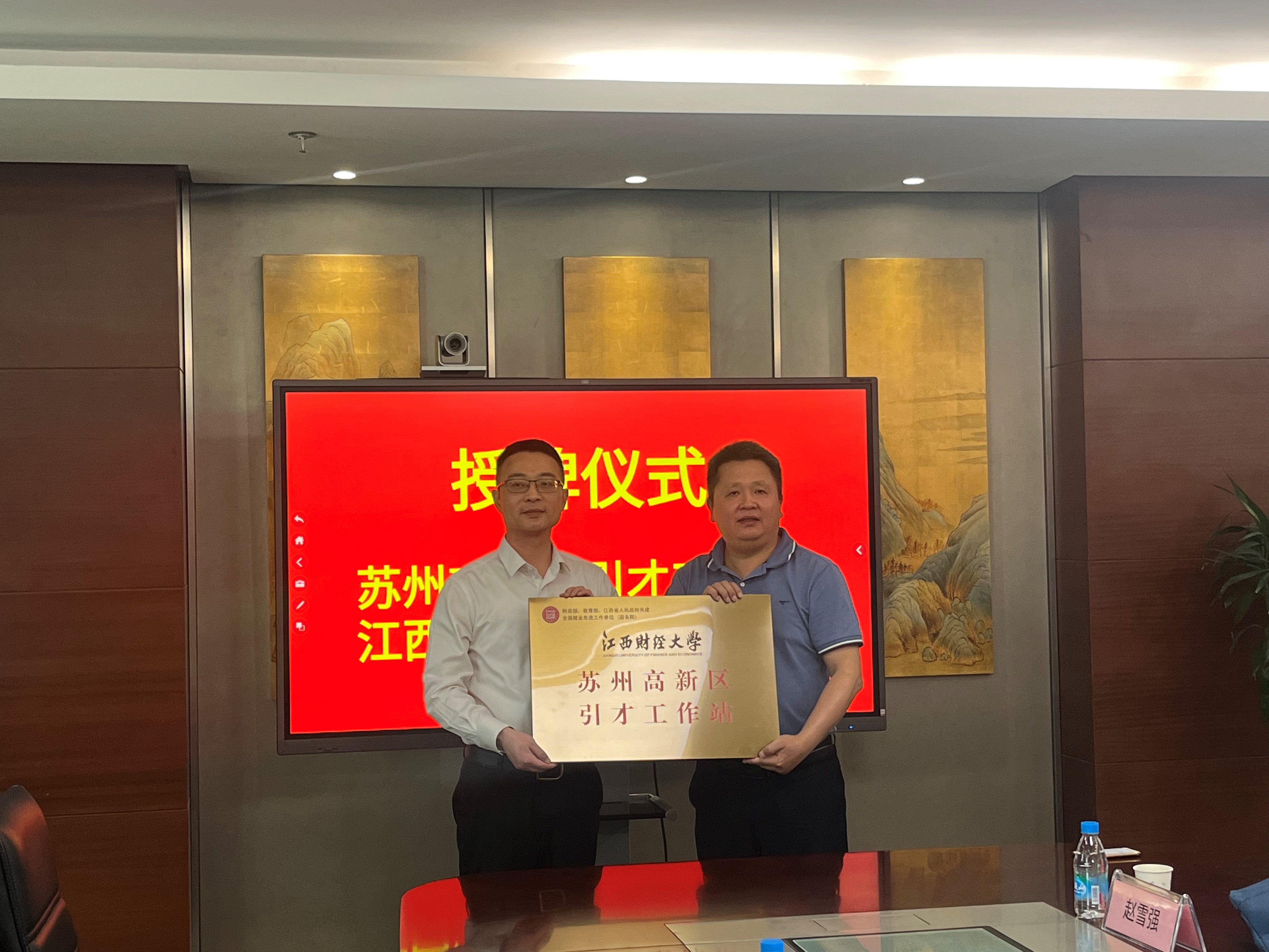下午,会计学院一行来到苏州高新区人力资源中心,双方就加强毕业生就业信息和资源开拓工作、实习基地建设工作进行座谈交流。会上举行了授牌仪式,苏州高新区人才市场授予江西财经大学“引才工作站”(受招就处委托)。会后,黄文德一行到苏州校友之家和部分校友进行了友好交流。