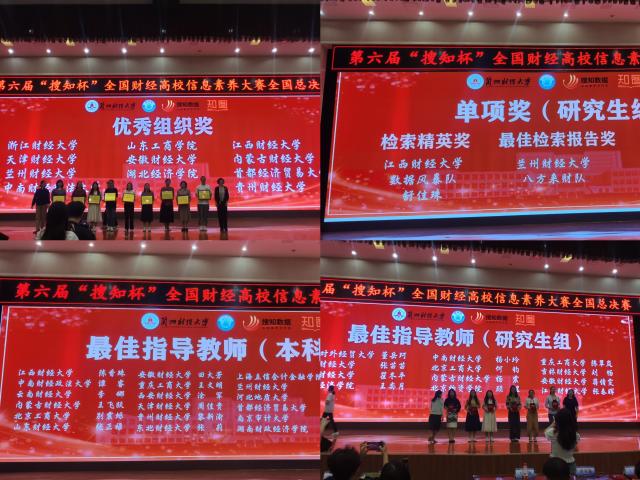 5月25日至26日,第六届“搜知杯”全国财经高校信息素养大赛全国总决赛在兰州财经大学隆重举行。来自全国财经高校的38支本科生代表队和21支研究生代表队参加了最后的角逐。我校代表队表现优异,斩获六项大奖。