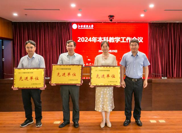 会议对2023年度本科教学管理工作先进单位和先进个人进行了表彰。李春根宣读了表彰决定,邓辉和卢福财分别为本科教学管理工作先进单位和先进个人颁奖。