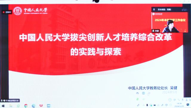 中国人民大学教务处处长吴健在会上作了“中国人民大学拔尖创新人才培养综合改革的实践与探索”主题报告。吴健指出,现阶段本科教育需要面向新时代、新技术和未来人类文明新形态,要面对国家发展战略的人才需求、教学新形态以及人的发展需求问题,因此要进行人才自主培养、数字化智慧化转型并建立高质量的育人体系。长期以来,我国紧缺的文科人才供给不足,传统文科专业过度细分,文科知识生产向人才培养转化不畅,文科在新技术变革背景下面临更大冲击。面对这些情况,我们应扎根中国,找准新文科的战略性方位;独树一帜,实现新文科的创新性突破;交叉融合,促进新文科的融合性发展。吴健结合中国人民大学拔尖人才培养实际,分享了中国人民大学在办学定位、育人理念、培养模式、培养方案、专业设置、课程体系、教材建设、训练体系等方面的经验,展望了未来发展的趋势。