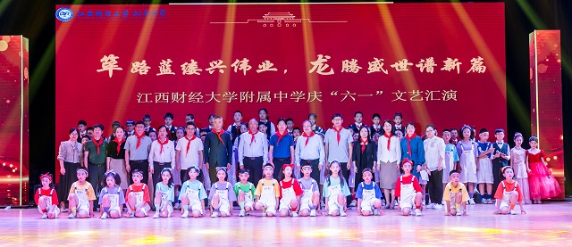 近日,附属中学主题教育文艺汇演暨“六一”儿童节庆典在我校蛟桥校区大礼堂举行。副校长阙善栋,国家一级演员、著名表演艺术家宋运成,南昌经开区社发局副局长、区教文体党委书记闵尊庆,区教文体党委委员王震宇,江西财经大学党办校办主任罗锐,工会主席郑赟,离退休人员工作处处长车有财,宣传部副部长万绍红,团委副书记阳铃,附属中学党总支书记叶申玲、校长张俊琦与全体师生、家长代表以及超过50万的在线观众和孩子们共同庆“六一”。
