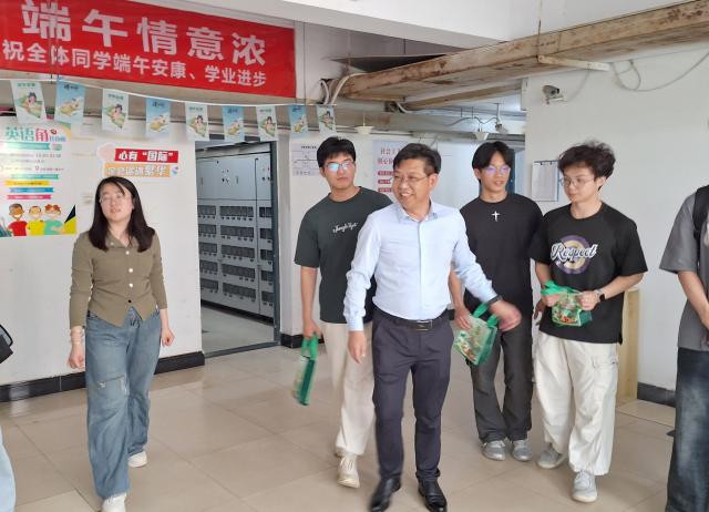 粽香飘校园,端午情意浓。在端午节即将来临之际,6月7日上午,副校长袁红林、学工部(处)部(处)长叶绍义、国际学院党委书记邢小明来到发放现场,向学生送上节日祝福,祝全体学生端午安康、学业进步。