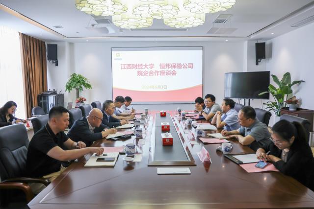 为进一步深化产教融合,落地江西财经大学金融学院与恒邦财产保险股份有限公司的战略合作协议,6月3日下午,金融学院院长桂荷发、副院长钟小林、风险管理与保险系主任胡军及相关老师赴恒邦财产保险公司洽谈校企合作事宜。恒邦财产保险公司党委书记、董事长潘淦,江西金融发展研究院院长肖峻,省金控集团人力资源部副部长石传发,公司党委副书记、常务副总经理周清,公司副总经理项福明等出席。会议由潘淦董事长主持。