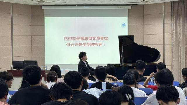 6月14日晚,青年钢琴演奏家何云天受邀赴设计与艺术学院185报告厅成功举办专场音乐会。音乐会现场观众来自校内外钢琴专业师生、音乐专业师生及钢琴音乐爱好者等百余人。设计与艺术学院李二永教授向何云天先生颁发了客座教授证书。