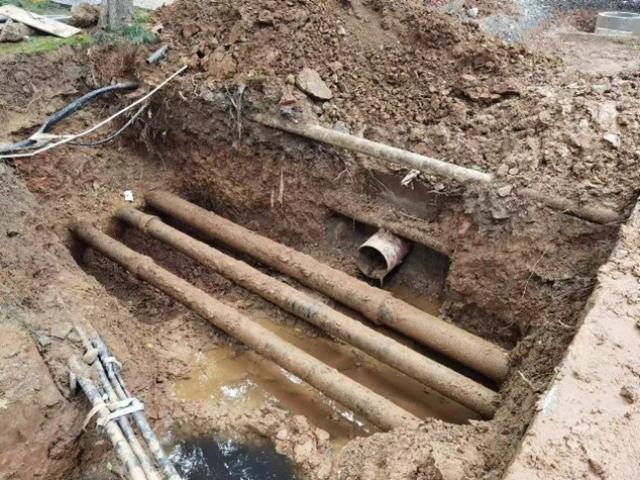 一、地下管网复杂程度高。尤其是蛟桥园这样的老校区,由于以前的施工工艺、水平、规范要求不高,加上不同的归口管理部门实施,老校区基础设施经过多年的新建、维修、改造,建筑物密集,给水、排水、强电、弱电、燃气、消防等新老管网埋设纵横交错、深浅不一,而且地下管网资料缺失,给施工带来了巨大的困难。机械开挖稍不注意就会损坏原有管线,管线密集交汇处,只能改用人工开挖,降低了施工工效。在原有管线无法避开的情况下,需要根据现场调整对新设管线、标高;有的交叉冲突点还要对既有管线进行迁改。这些无法预见的情况,对施工工期带来较大的影响(如下图)。