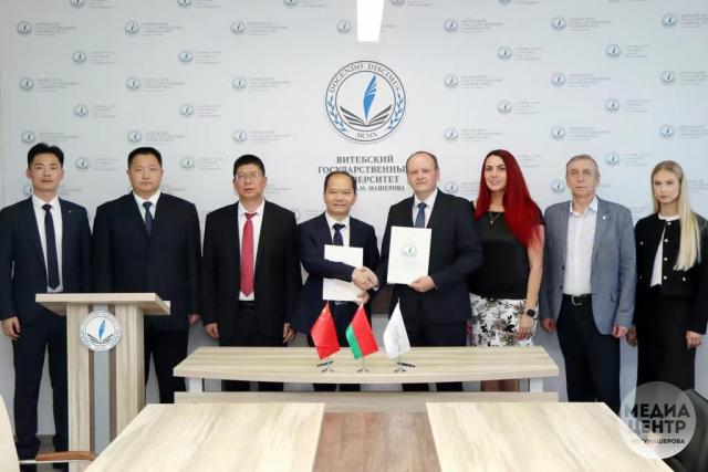 在维捷布斯克国立大学,代表团与该校第一副校长Мехович Андрей Павлович及校领导团队进行座谈交流,双方一致同意将在共同组建孔子学院、学生互换,师资互派、共同合作研究项目等方面进行合作,并签署合作备忘录。