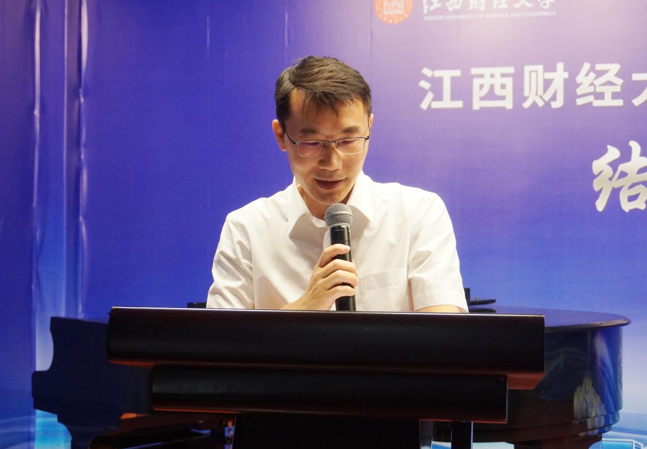 优秀学员代表王圣宇在发言中表达了对江西财经大学的感激之情,他回顾了在江西财经大学学习的难忘时光,并且感谢父母、老师和同学们的帮助与关怀。并祝愿广大结业生们可以在新的起点谱写属于自己的新辉煌。他感慨地说:“在这里,我不仅学到了知识,更学会了如何与来自不同文化背景的人交流和合作。”