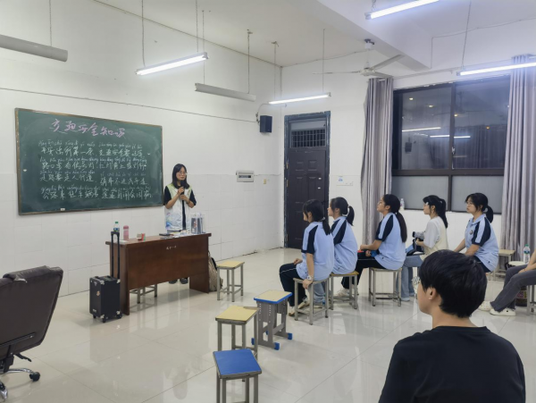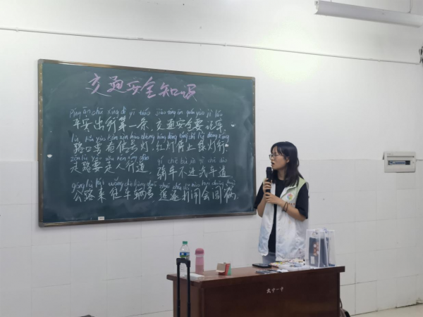 在活动的序幕,实践团成员采用朗朗上口、易于记忆的韵律口诀,引导学生们掌握出行安全的基本常识。在传授过程中,实践团成员注重语调的变化和节奏的控制,于关键信息处强调字词的精准停顿与声音的抑扬起伏,这一举措加深了学生们对安全要点的记忆,还巧妙地融入了语言学习元素,助力同学们在轻松愉快的氛围中纠正发音习惯,逐步掌握标准普通话的正确发音技巧。