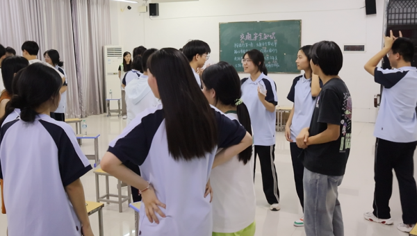 开始“构图创意挑战”游戏的初期阶段,学生们被划分为五个小组,每个小组成员围坐成一个圈。随着悠扬旋律的缓缓流淌,每位同学依次走到舞台前方,各自施展创意,逐一展现形态各异的肢体动作,共同绘制出一幅生动有趣的画面。此过程不仅要求个体的表现力,更强调团队间的默契配合与创意碰撞整个活动充满了无限的想象空间与创意火花。