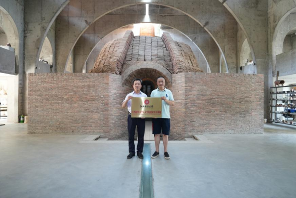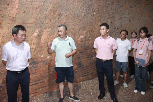 丙丁柴窑作为一座中国最具代表性的柴窑之一,在保持着传统窑炉风格的同时给窑房融入了现代时尚元素,由砖红色窑砖垒砌点缀于清水混凝土建筑之上的丙丁柴窑坐落于山林之间,兼具人文气息与生态美景。此次行程,在罗建斌老师的带领下,党委书记陈华、副书记马明和实践团成员对丙丁柴窑进行深度参观。