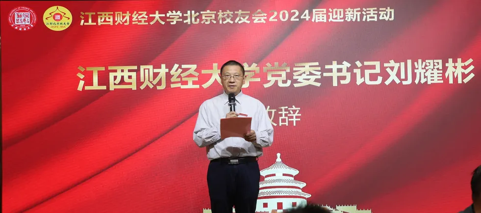 刘耀彬代表学校致辞,他向所有大江南北、世界各地的江财新校友们表示热烈欢迎,对每一位江财校友用真诚眼光关注江财、用诚挚精神传承江财、用坚实物质支持江财、用辛勤奔波帮助江财表示衷心感谢,代表学校热情期盼所有在场和不在场的校友、近在眼前和远在各地的江财人常回家看看,并欢迎校友们回母校参加10月2号的校友文化节。