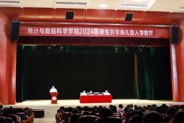 9月25日下午,统计与数据科学学院在蛟桥园北区大礼堂举行2024级新生开学典礼暨入学教育大会。学院党委书记陶春海,党委副书记刘贺,副院长郭露、刘庆出席大会。大会由刘贺主持,学院学工小组成员、2024级新生班主任及2024级全体本科、研究生新生共600余人参加。