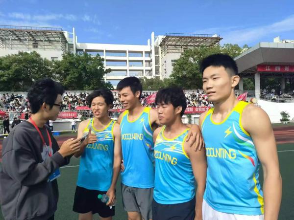 上下同欲者胜,同舟共济者兴。正如会计学院的健儿们,他们起初并未领先。但他们心往一处使,每一次接棒都迅速利落,每一次奔跑都拼尽全力。零失误的背后,是他们日复一日的辛苦训练,赛后他们说道:“我们两周前就开始一起训练了。”他们的辛苦没有白费,最后一刻,他们用挺膺的胸膛顶过红线,夺得第一名的奖牌。他们的呐喊与相互赞扬展现了江财学子“众力并则万钧举”的团结力量。点点星火,汇聚成炬,同心永结,方可创就江财辉煌!