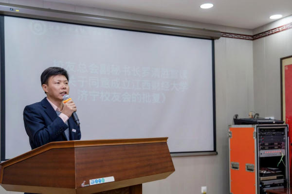 罗清胜宣读了《关于同意筹备成立江西财经大学济宁校友会的批复》并宣读了组织机构候选人名单。与会校友们认真行使权利并进行了表决。
