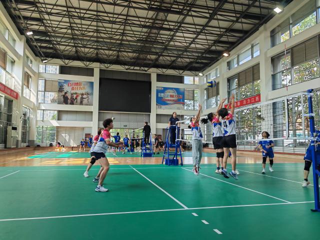 本次活动是省教育厅推动“五育并举”和“健康第一”教育理念落到实处的重要举措之一。我校高度重视,校工会和气排球协会精心组织、全力配合,聘请了马跃老师担任了教练,后德顺担任了助理教练,精心选拔屈丽萍等10名女教职工参加此次比赛。经过一个多月的刻苦训练和赛前的三次交流赛的磨合,大家的技术水平有了一定的提高。比赛的三天中,我们的教练和队员奔波在赛场上,个个精神抖擞,全力以赴投入到比赛中。教练员每一次战术布置、技术暂停、现场指导;队员们每一次绝妙的发球、精准的拦网、惊险的救球、充满力量的扣杀、拼尽全力的传球、巧妙默契的战术配合,都让现场的气氛达到了高潮。发球空隙的紧密战术沟通、彼此鼓励,“没事没事接好下个球”“这个球我来”“注意对方吊球”“拦网手要压下去”......失球多了,教练员抓准时机暂停,分析局势,调整战术,选手们沉着观察,寻找对手弱点,展开攻势。每一个细节都充分展现了个人精湛的技术与团队熟练的战术配合以及顽强拼搏、积极进取的精神风貌,充分展现了江西财经大学教职工齐心协力的团队合作精神,赢得了现场观众的阵阵喝彩和热烈的掌声,江财的教职工们用她们的汗水和热情点燃了整个场馆。