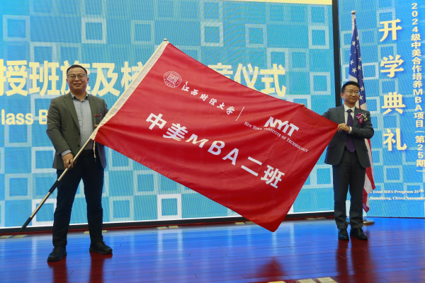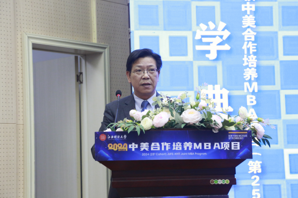 近日,工商管理学院举行2024级(第25期)中美合作培养MBA项目开学典礼。美国纽约理工学院校长杰瑞·巴伦丁教授以在线方式致辞,江西财经大学党委常委、副校长袁红林教授出席并致辞。典礼由江西财经大学工商管理学院院长胡海波教授主持。美国纽约理工学院管理学院院长杰森•盖纳什教授、管理学院执行副院长刘贤方教授、国际商业研究中心主任乔伊斯·裘女士,江西财经大学研究生院院长罗世华教授、工商管理学院党委书记贺三宝、国际合作与交流处副处长刘小兵、MBA教育学院副院长王鑫,中美MBA项目校友代表、机械工业出版社副社长陈海娟等出席。2024级(第25期)中美MBA项目管理团队、新生班班主任、教师代表及新生等130余人参加典礼。