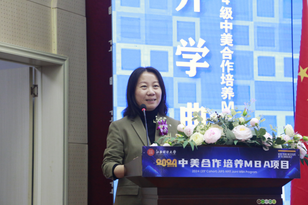 陈海娟对母校领导和老师给予她的信任与机会表示衷心感谢,并祝贺2024级新生获得如此难得的的学习机会。陈海娟回顾了自己在中美合作培养MBA项目中的学习经历,认为通过MBA的学习,不仅获得了最前沿的专业知识,还拓展了国际化视野,并结下了深厚的师生同学情谊。陈海娟鼓励学弟学妹们珍惜这次学习机会,吸收中美两所名校的精华,相互交流、相互启发,建立起深厚友谊和商业网络。