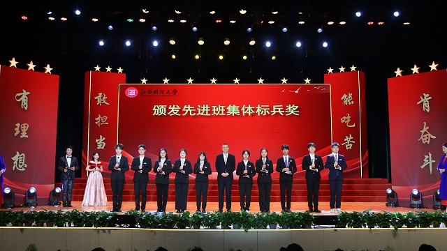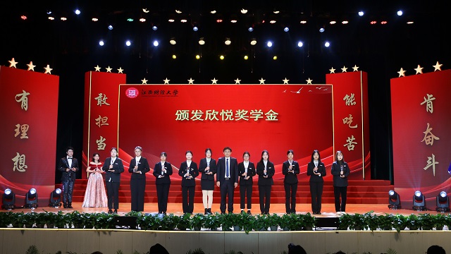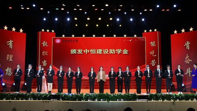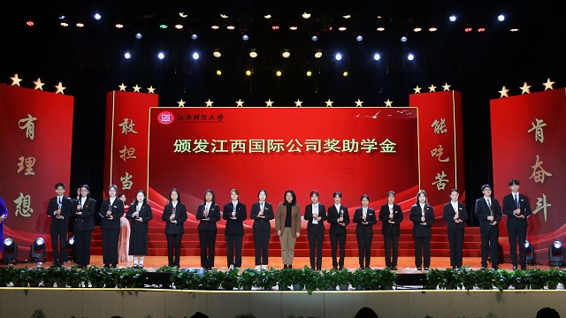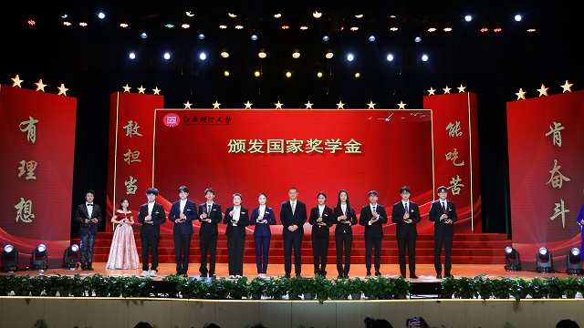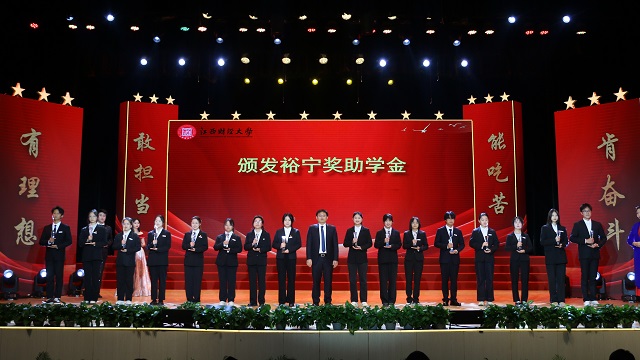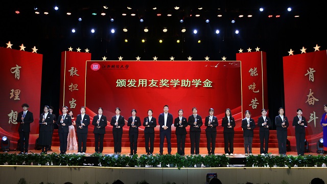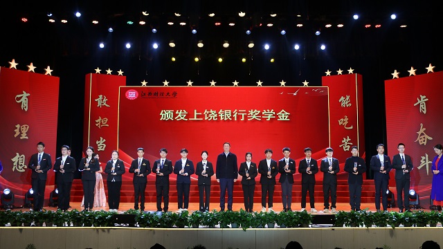 校领导与校友企业嘉宾颁发了国家奖学金、国家励志奖学金、先进班集体标兵、第四届校长奖学金(信毅荣誉奖章)、优秀学生标兵、第十八届鼎汉奖学金(优秀学生干部标兵)、第七届优秀国际学生和团结友谊奖、第十五届洪银兴经济学奖学金、第十一届余来文奖学金、第八届欣悦奖学金、第六届东亿奖学金、第五届裕宁奖学金、第四届立信奖学金、第二十二届用友奖学助学金、第十七届上海校友会奖学金、第十六届岳向东奖助学金、第十五届九江银行奖学金、第十一届 “泰隆之星” 奖学金、第九届81计划阳光奖助学金、第七届江西国际公司奖助学金、第七届奥飞奖学金、第五届中恒建设助学金、第三届“赣银之星”奖学金、第三届上饶银行奖学金。