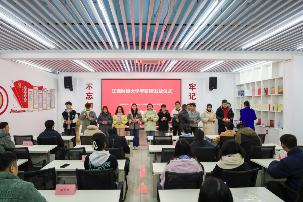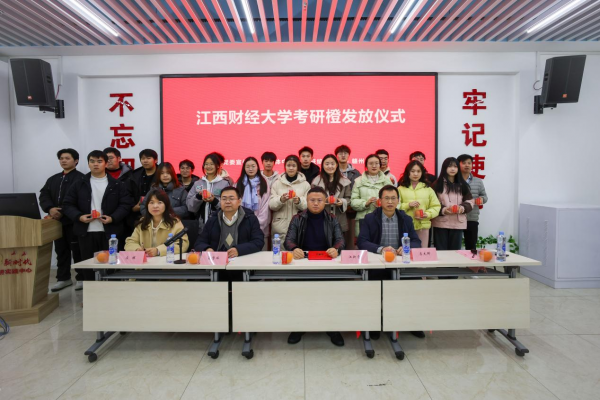 12月11日下午,江西财经大学2024年考研橙发放仪式在学校新时代文明实践中心举行。赣州银行南昌分行副行长江新奇、赣州银行赣江新区支行党支部书记及负责人应祺、校友联络服务中心主任夏贤锋及各学院师生代表出席并参加活动。仪式由党委宣传部副部长李大晖主持。