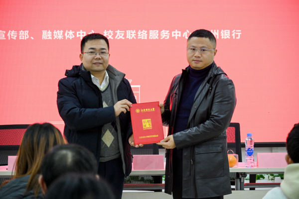 夏贤锋向在座师生介绍学校与战略合作单位赣州银行已开展多次合作,向赣州银行连续捐赠考研橙表示感谢,为即将奔赴考研“战场”的学子们加油鼓劲。