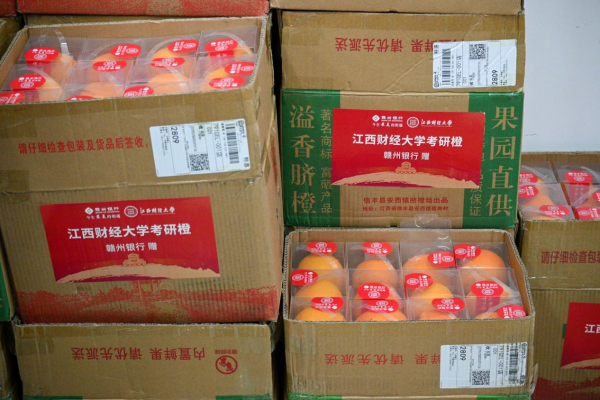 每一颗金灿灿的考研橙都象征着诚心与真心,由党委宣传部、融媒体中心下属学生组织大学生通讯社的志愿者们精心包装,贴有赣州银行与学校专属定制的江财红色封条。寄托的是全校师生、广大校友对同学们考研成功的祝福与希冀,让考研学子在考研之路上感受到江财的温暖。