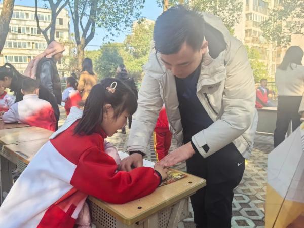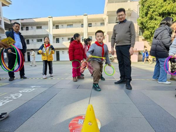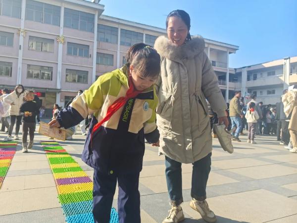 学生们手持游园会闯关卡,与家长携手并肩,共闯一个个趣味横生的关卡。