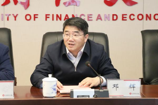 邓辉对江尚文董事长一行的到来表示欢迎,并简要介绍了学校近年的发展状况。他指出,江西财经大学正在由传统财经类大学转变为以经济管理为主的多科性大学,学科结构呈现“33制”,涵盖资金管理、财经相关学科以及数据驱动学科。学校在数字化方面布局较早,希望在人才培养、课题研究、联合实验室建设等方面与省金控集团公司进一步深化合作,特别是在金融科技和风险管理领域,推动双方的数字化转型和创新发展。