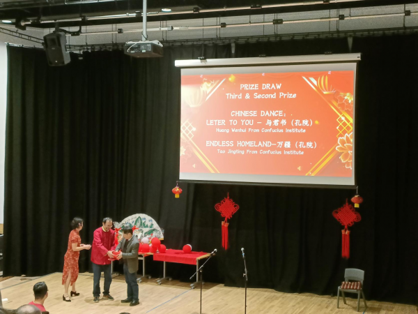 在活动的压轴环节,考大孔院中方院长曾献飞受邀担任颁奖嘉宾,为本次活动的一等奖幸运家庭颁发奖品,并送上诚挚的新春祝福。