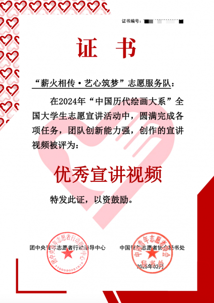 经过两个月的精心策划与实施,在2024年暑假期间,“薪火相传·艺心筑梦”志愿服务队成功开展了8场以“中国历代绘画大系”为主题的系列宣讲活动,宣讲内容丰富、形式多样,深入挖掘和传播了中国古代绘画的美学价值与文化内涵,赢得了广泛的社会关注与好评。