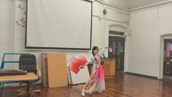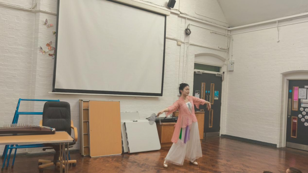 图4:黄文慧老师在Highfield Primary School表演舞蹈《予君书》。