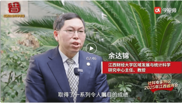 日前,江西省社科联携手江西广播电视台今视频策划摄制推出《社科专家热议2025年江西省两会》系列短视频。我校区域发展与统计科学研究中心主任、统计与数据科学学院教授余达锦受邀参加首期短视频热议,就江西省政府工作报告提出的相关重点工作积极提出意见建议,助力江西经济社会高质量发展。短视频报道通过今视频客户端首发后,还被“学习强国”学习平台、央视频客户端、人民日报客户端、江西社科、今日头条、百度、腾讯新闻、一点资讯、江西社科大讲堂等平台转载推送,视频播放超10万次,受到广大网友一致好评,取得良好社会传播效果。
