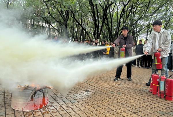 据悉,本次灭火培训采用“理论讲解+实操演练”的模式,有效提升了学生的消防技能和应急处置能力。两院相关负责人表示,今后将定期开展灭火演练及基础安全教育活动,并结合反诈宣传、宿舍安全排查等多样化主题,以更加贴近学生实际需求的方式,筑牢校园安全防线,为创建平安校园提供有力保障。(文/刘宇涵 曾曦 图/陈芯 余逸晨 明永琪 编辑/鲍道斌 审核/一审 姜莹 二审 赵旻 终审 李大晖)