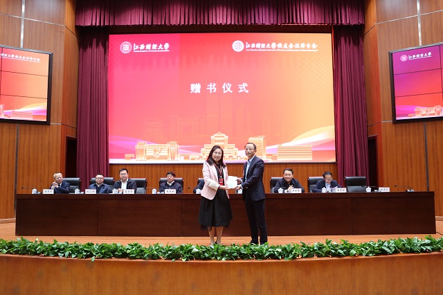 校长邓辉和法律分会会长张国轩共同为法律分会揭牌。校友卢晓梅女士将凝聚其多年工作心得的专著《中国体育法律问题研究》赠予法学院。
