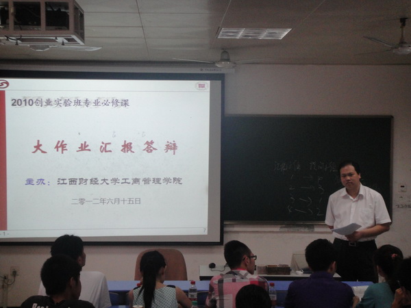 6月15日上午,尽管全校课程教学全部结束,但工商学院2010级创业教育实验班的21名学生还在教室里紧张地进行大作业的课堂汇报与答辩。