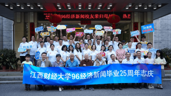 见面会上,校友们与恩师重逢,场面温馨感人。“独树一帜 江右突起 经济新闻春雷动,欢歌九霄 学子荣归 雄师闯将浩荡来。”面对全国首届经济新闻班的优秀学子,学校原经济文化传播系主任熊焰教授为校友作了一副对联,既饱含对往昔师生情谊的珍视,又寄托了对校友事业发展的殷切期许。