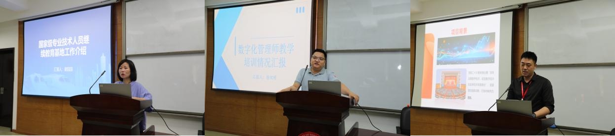 研讨会邀请来自江西财经大学人社部专业技术人员继续教育基地项目负责人、继续教育学院教学管理部主任谢园园老师,江西财经大学数字技术工程师(数字化管理师)培训讲师、经济学院徐双明博士,和继续教育学院“数字产业人才培养”项目的王超伟老师分别就“江西数字人才研究院”正在开展的三个项目进行了分享。
