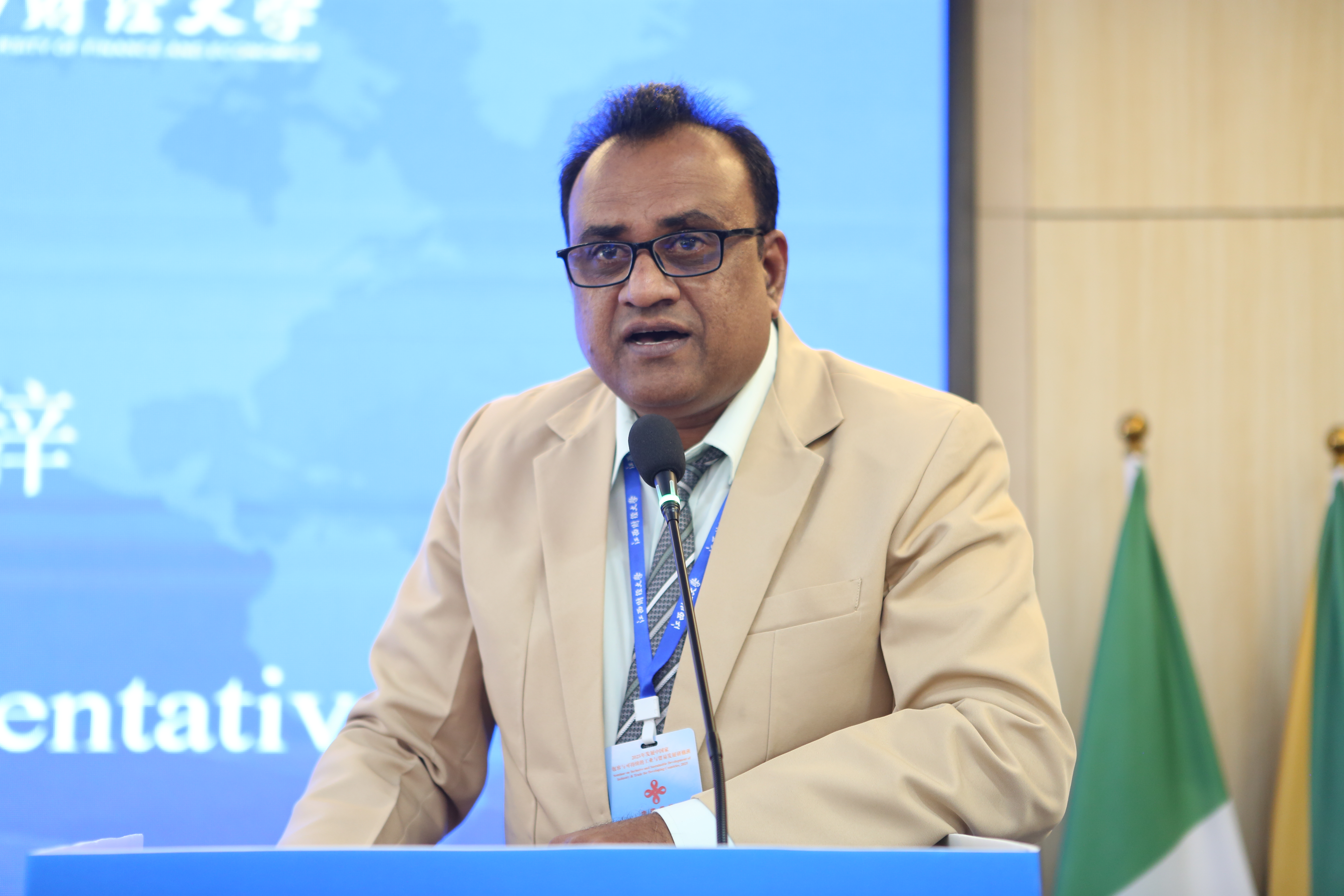 来自圭亚那的德奥香卡尔・莫汉代表研修班学员发言,他衷心感谢商务部提供的宝贵学习机会和江西财经大学的精心组织安排。他表示,通过此次研修学习,对中国有了全新的认识与理解。在返回本国后,将把在此次研修中学到的宝贵的知识与经验用于工作实践中,将最真实、准确的信息传播给本国人民。