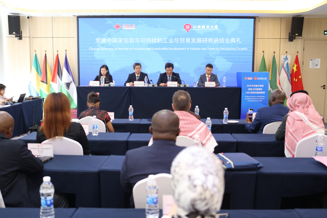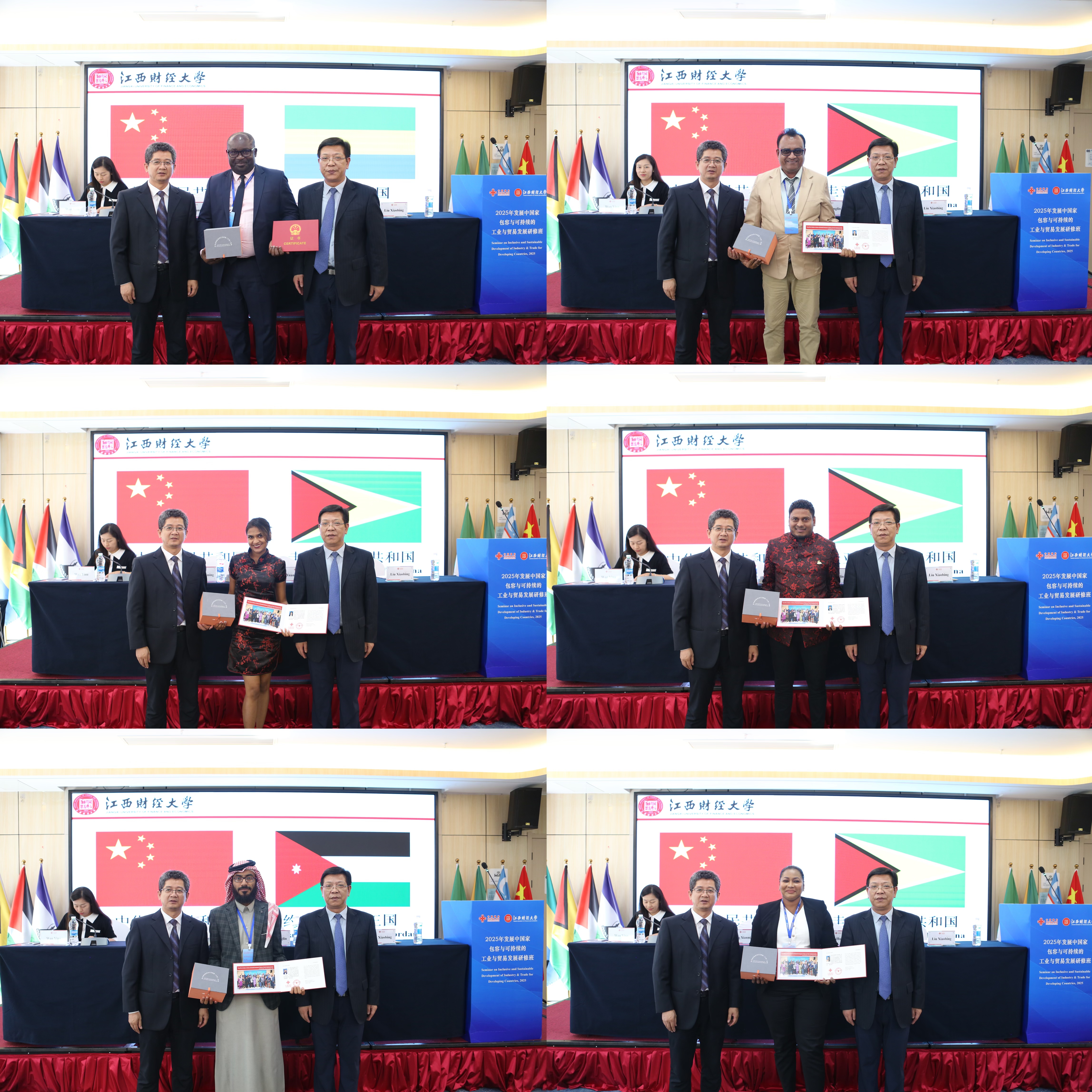 6月30日下午,由商务部主办,我校与江西外语外贸职业学院联办的“发展中国家包容与可持续的工业与贸易发展研修班”结业典礼在南昌举行。副校长袁红林出席仪式并致辞。海外教育学院院长黄先明、国际合作与交流处副处长刘小兵以及来自乌兹别克斯坦、约旦、加蓬、莱索托、南非、尼日利亚、圭亚那等7个国家的29位学员参加仪式。活动由海外教育学院副院长万谊娜主持。
