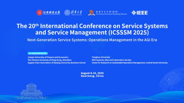 8月8日至10日,由江西财经大学、清华大学、香港中文大学(深圳)和IEEE共同主办,信息管理与数学学院承办的第二十届服务系统与服务管理国际学术会议(ICSSSM2025)在江西南昌成功召开。会议设有3个大会主题报告、15个杰出学者报告和50个平行论坛,围绕“新一代服务系统:通用人工智能时代的运营管理”主题,共同分享前沿研究成果,探讨生成式人工智能(GAI)与通用人工智能(AGI)如何重塑服务与运营管理的理论体系、方法范式与应用场景。