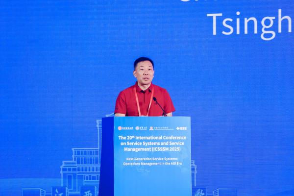 会议联合主席、清华大学肖勇波教授致辞。他首先对参会专家学者表示感谢,并高度评价和充分认可江西财经大学的承办工作。他提到,自2004年创办以来,服务系统与服务管理国际会议(ICSSSM)一直致力于探讨服务系统与服务管理领域的挑战与变革,已成为管理科学与系统工程领域颇具影响力的国际学术交流平台。本届会议旨在通过探讨复杂通用人工智能技术如何重塑服务系统和服务管理的未来格局,促进学术讨论并服务于行业实践。